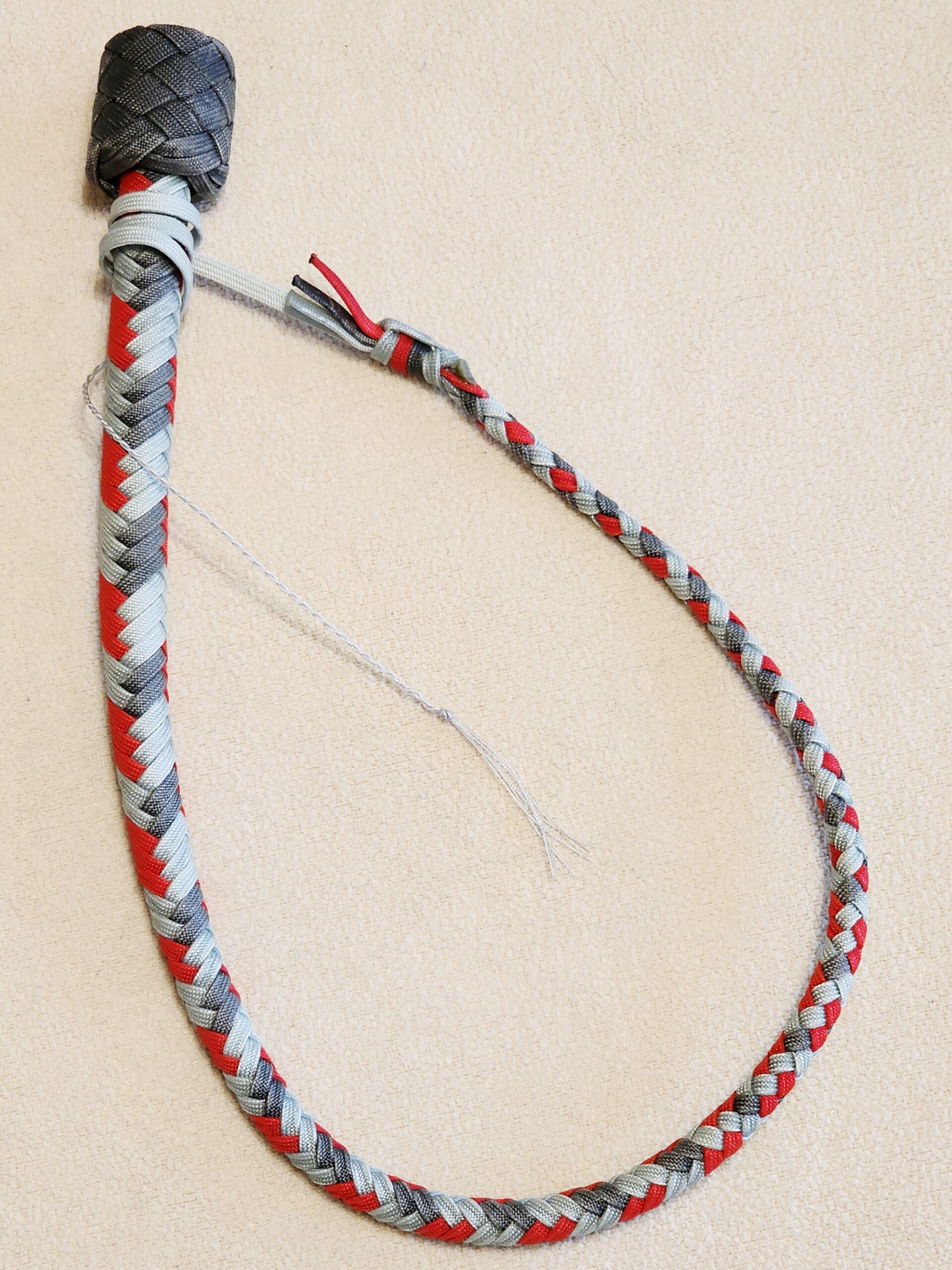 This 2-foot single-belly, 12-plait snake whip features international orange paired with charcoal grey and silver for a sharp, high-contrast look. The charcoal grey handle and silver fall complete the design with a clean, streamlined finish. Despite its compact size, the 12-plait overlay provides a smooth taper, tight construction, and dependable responsiveness.