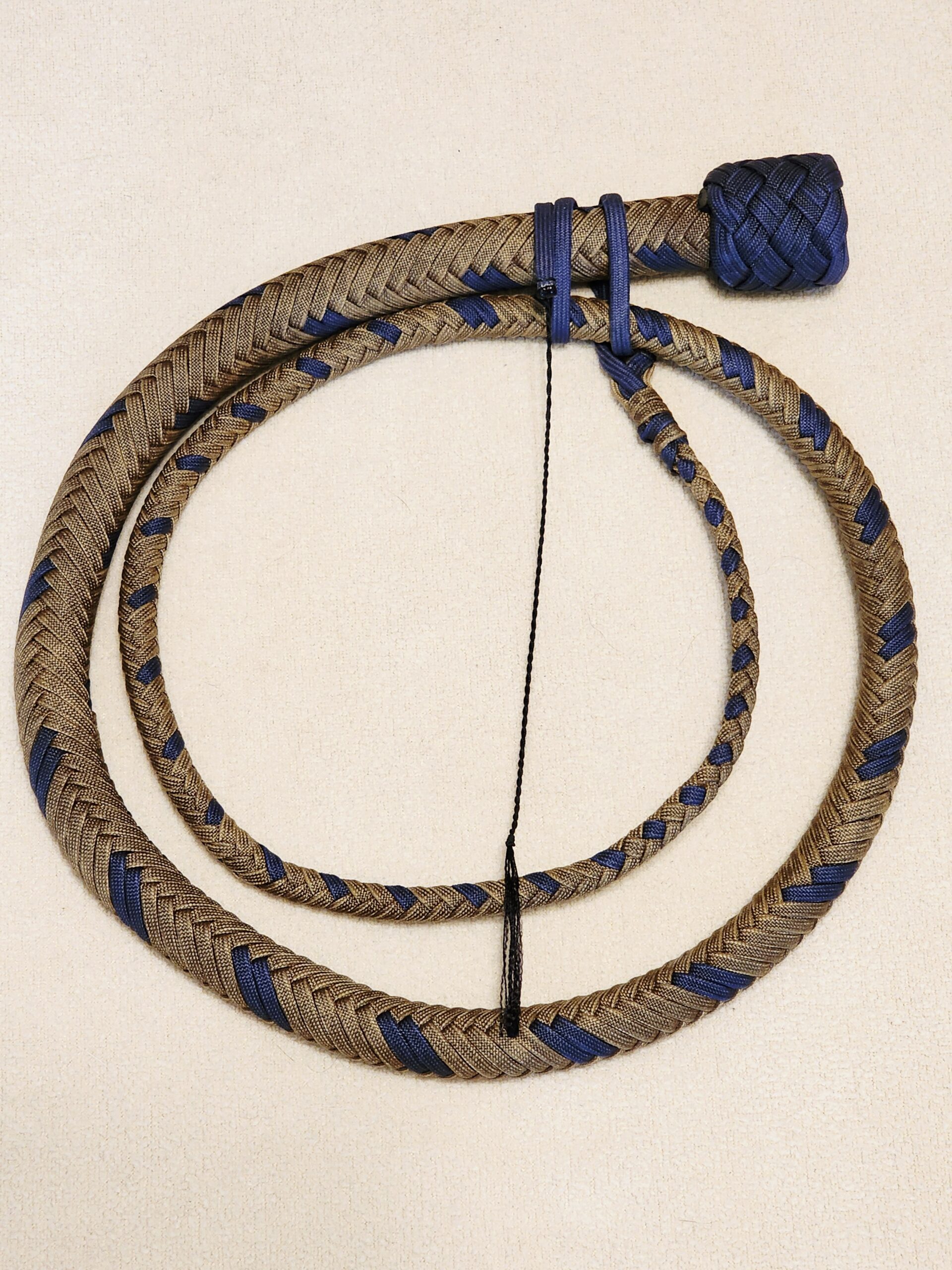 This 4-foot, 16-plait snake whip pairs coyote brown and midnight blue for a clean, understated colorway with strong contrast. The midnight blue handle and matching fall create a cohesive finish while keeping the overall profile sleek and streamlined. The 16-plait construction provides a smooth taper, tight plaiting, and reliable responsiveness along the full length of the thong.